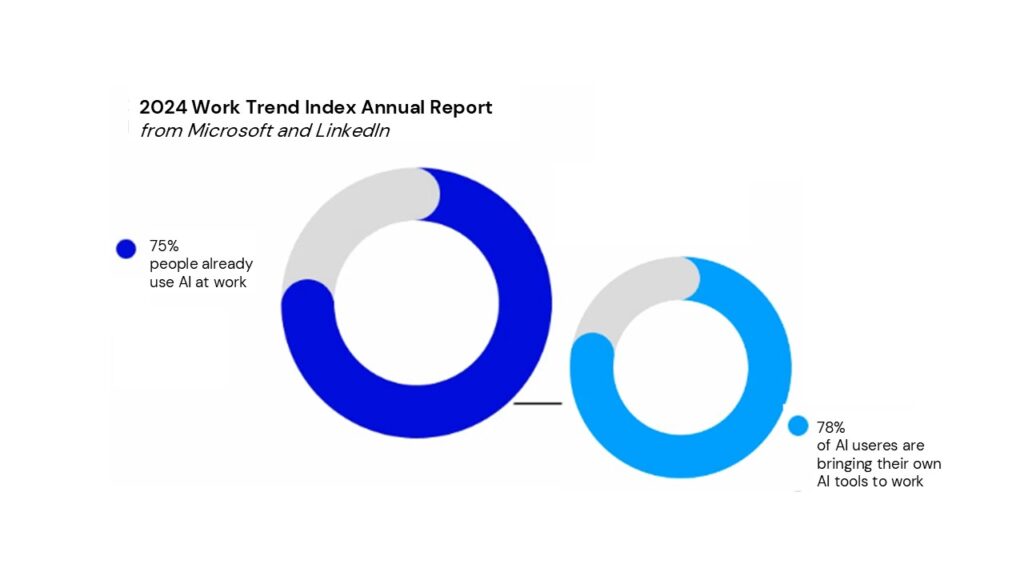 Tuttavia, questa diffusione solleva diverse sfide, tra cui l’accentuarsi del rischio di adozione non organica e priva di una strategia chiara di tali tecnologie. A conferma di ciò, un report di Microsoft e LinkedIn rivela che il 75% dei lavoratori della conoscenza utilizza già strumenti di IA sul posto di lavoro, e il 78% di questi impiega soluzioni di IA acquisite autonomamente o tramite versioni gratuite. Secondo il report questo fenomeno è particolarmente diffuso nelle PMI, dove coinvolge l’80% dei lavoratori, evidenziando una crescente tendenza all’uso di strumenti di IA senza un’integrazione strategica pianificata.