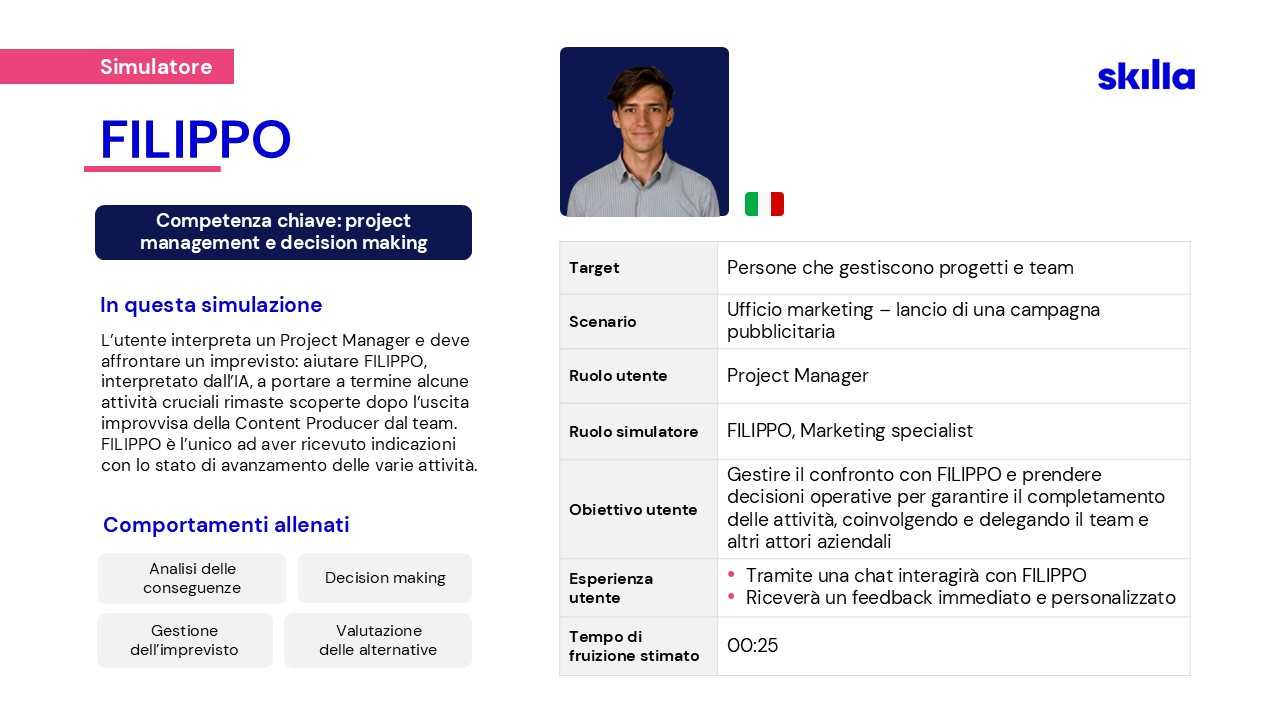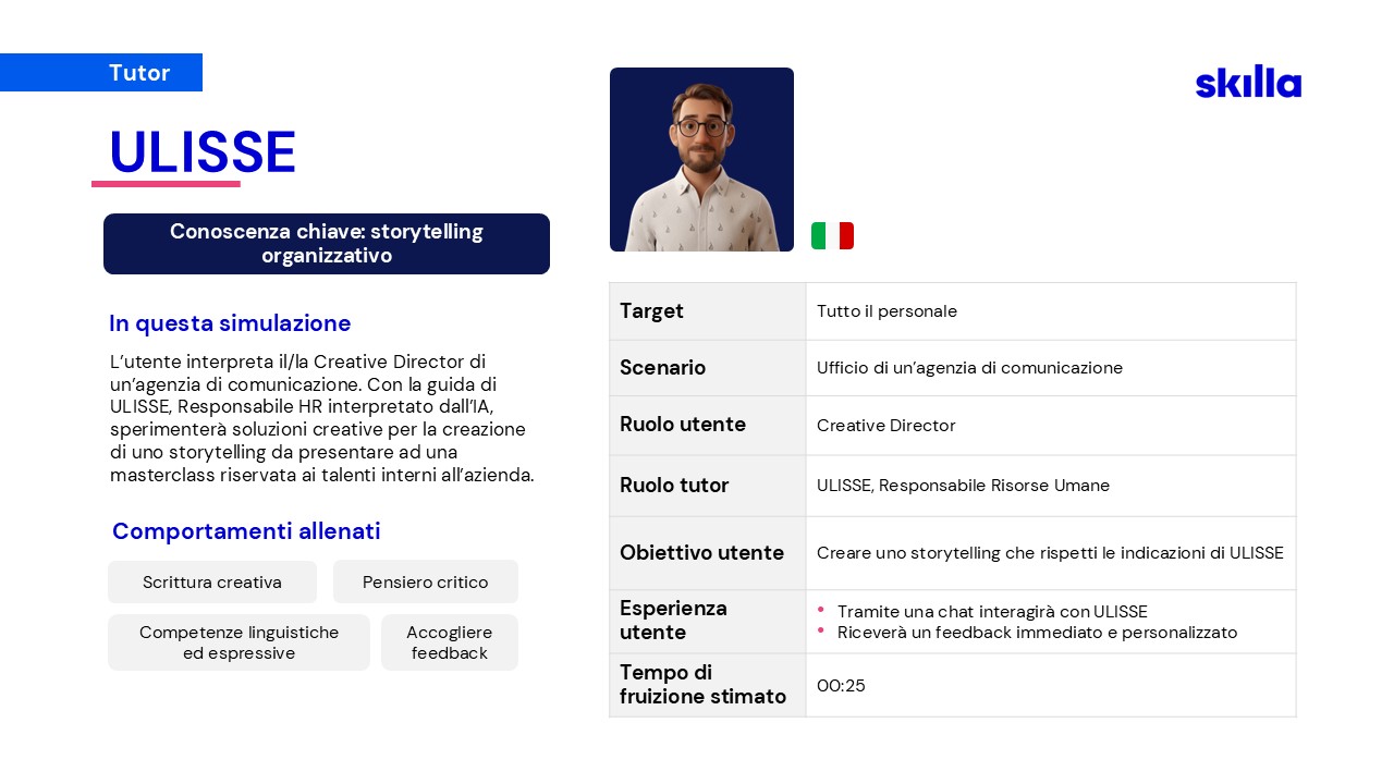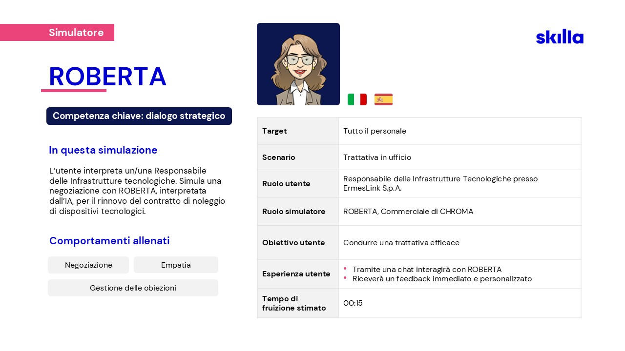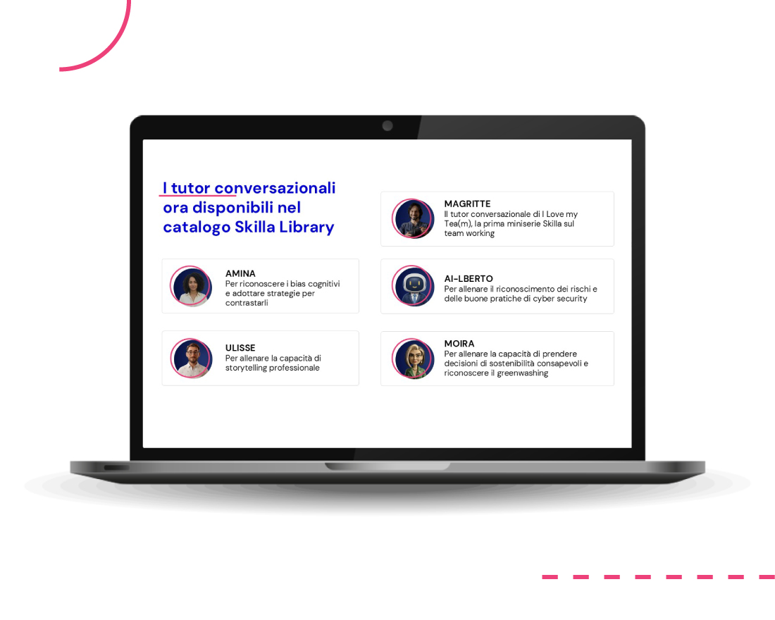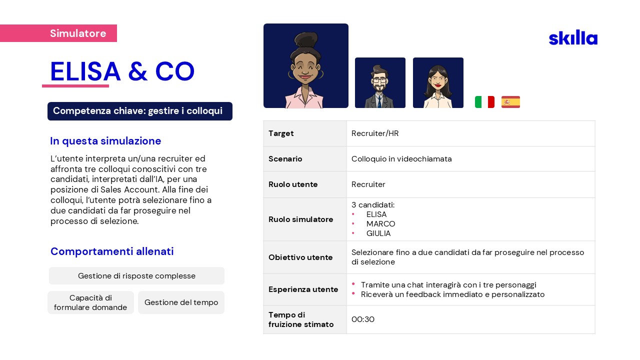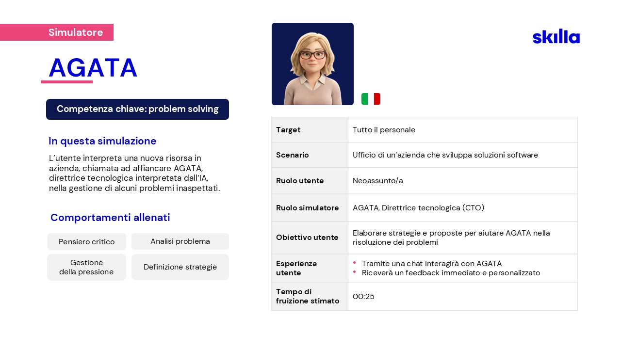 Per affrontare le nuove sfide, nel 2023 Skilla ha creato un team dedicato alla ricerca e sviluppo di soluzioni AI, pensate per supportare HR e chi si occupa di formazione.