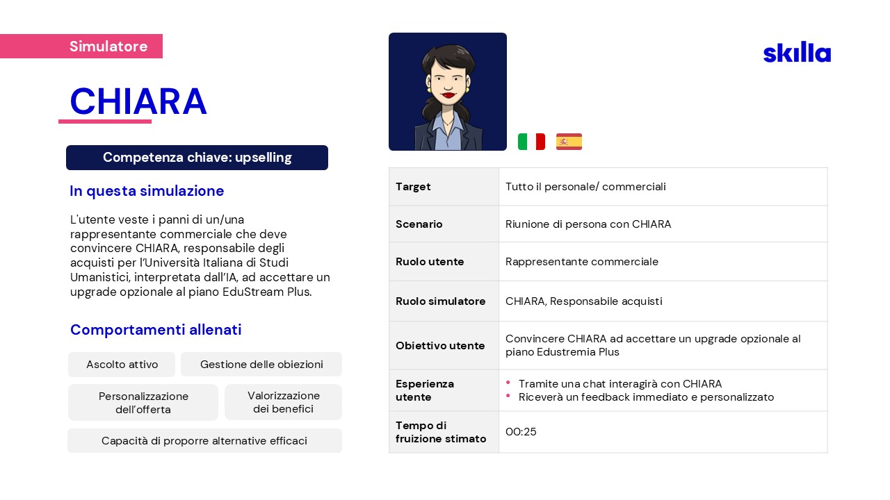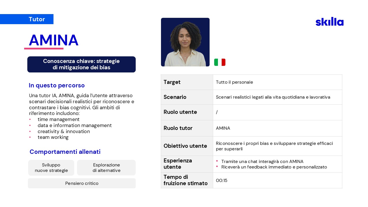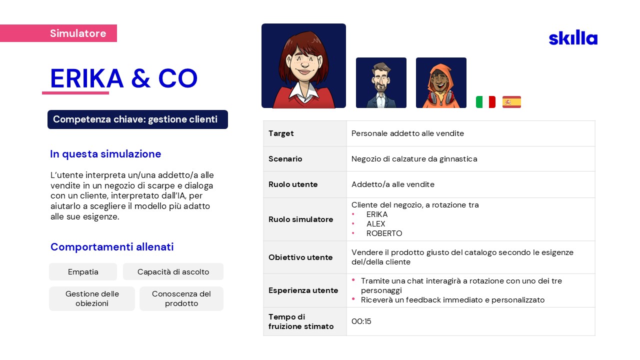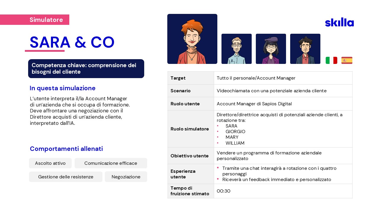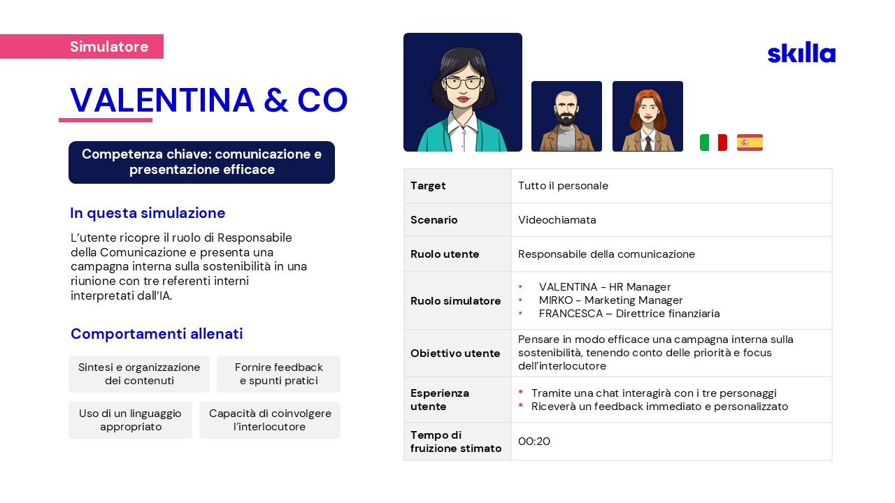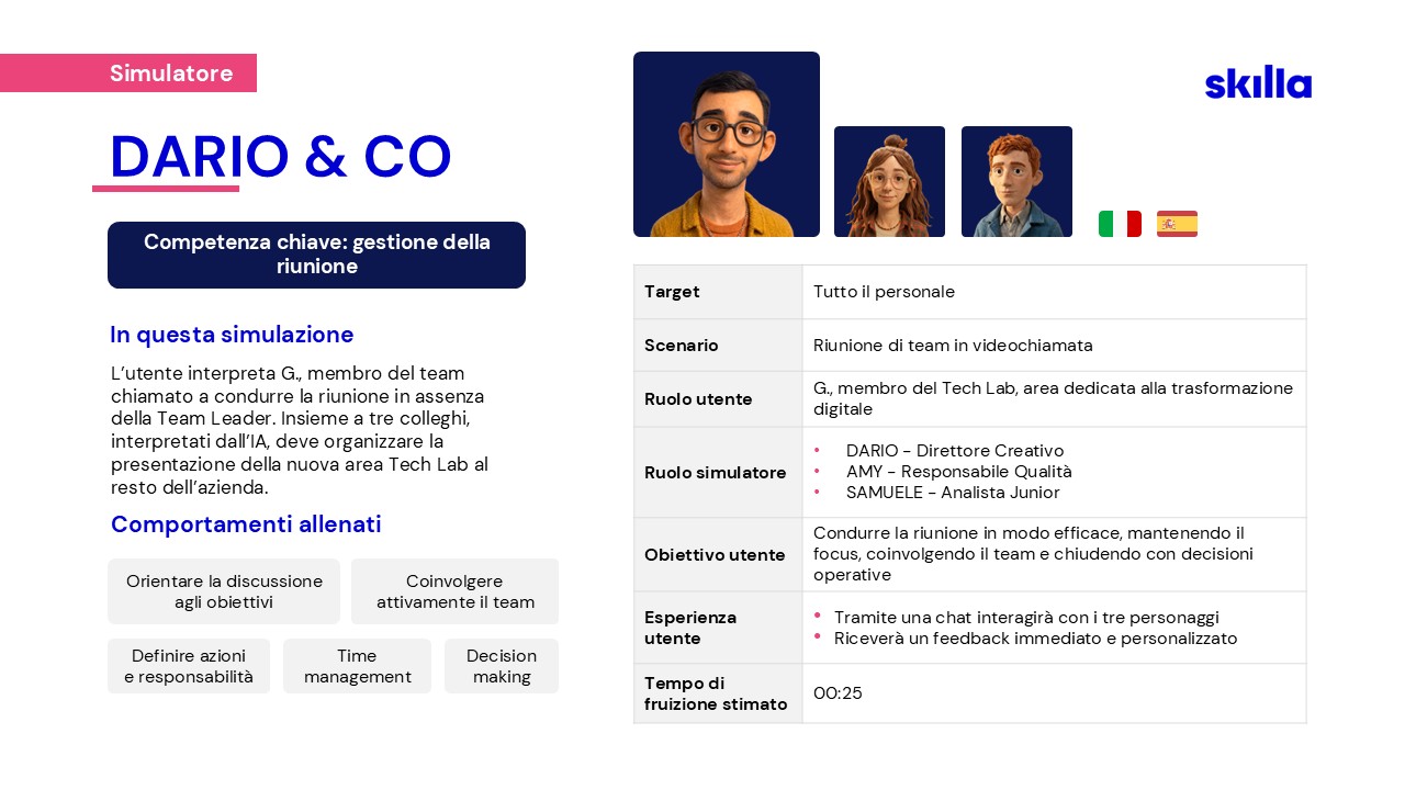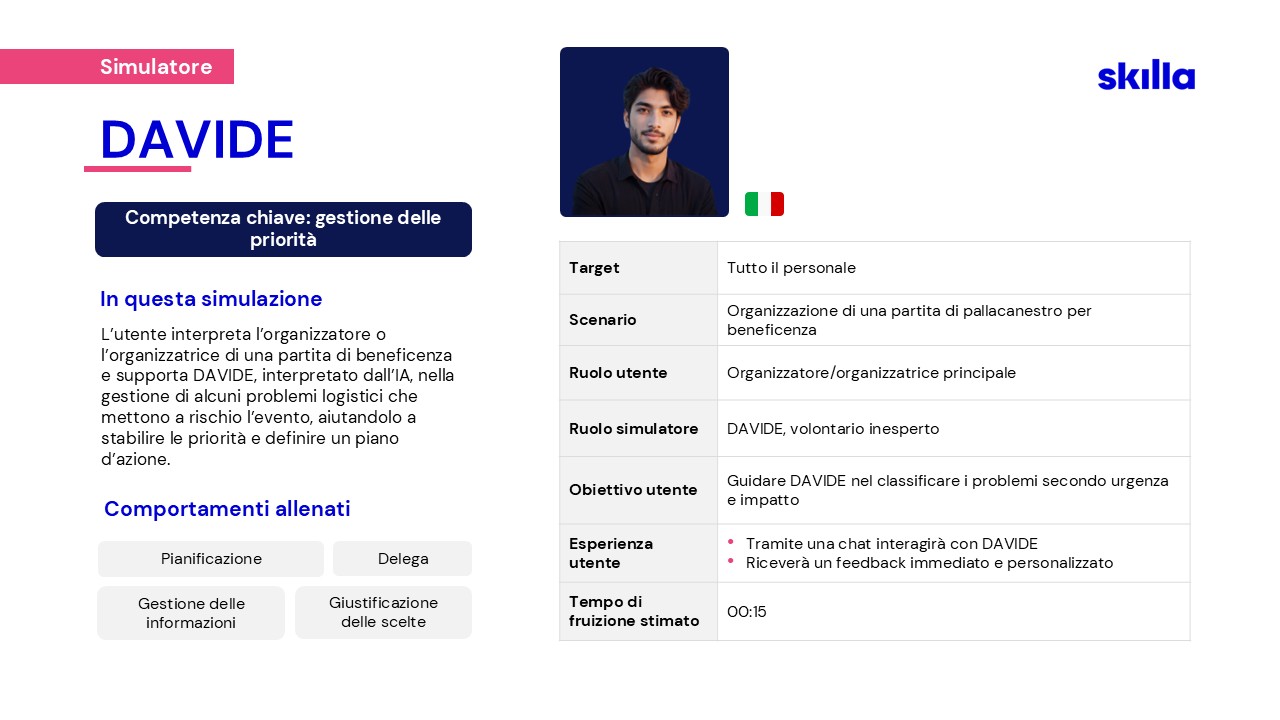 Per affrontare le nuove sfide, nel 2023 Skilla ha creato un team dedicato alla ricerca e sviluppo di soluzioni AI, pensate per supportare HR e chi si occupa di formazione.